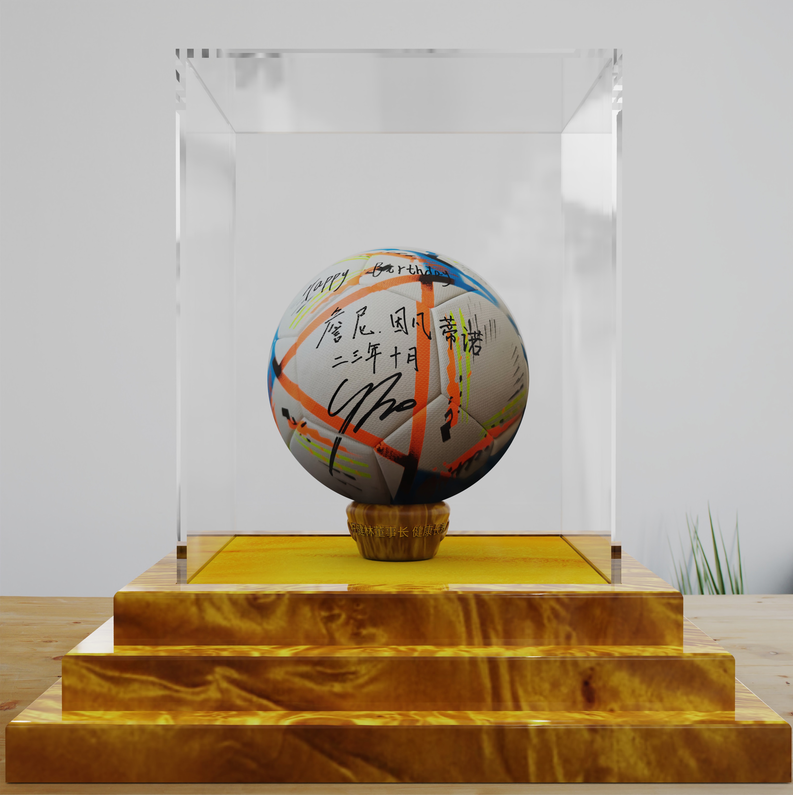 足球---大连曾经的骄傲,无数追梦人幻想在绿荫场上驰骋,时过境迁大连人足球俱乐部于2024年1月17日宣布解散,足球城仅留的壁垒也退出了顶级联赛的舞台,我们目睹了足球城从辉煌到落寞,为致敬健林董事长对大连足球事业发展的贡献,让更多的人怀念足球城的辉煌与过去,因此,我们将大连某某为健林董事长70岁生日定制的生日礼品展示给大家,礼品由因凡蒂诺、梅西、C罗中文祝福和签名的足球,展示柜是由水晶和金丝楠木手